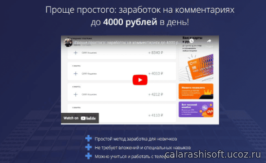 В своем курсе я расскажу о самом простом и доступном способе заработка в сети, который поможет вам не только благополучно продержаться во время нынешнего кризиса, но и обернуть ситуацию себе на пользу. Мой способ идеально подойдет: Работающим людям и пенсионерам Отличная прибавка к пенсии или зарплате, и работа, не требующая специальных умений и высокой компьютерной грамотности. Матерям в декрете и домохозяйкам Дополнительный стабильный источник доходов в семью, занимающий до 1 часа в день. Вы сами определяете свой график. Студентам, должникам и безработным Срочно нужны деньги? Разместите свой первый комментарий уже сегодня и зарабатывайте до 4000 рублей каждый день!